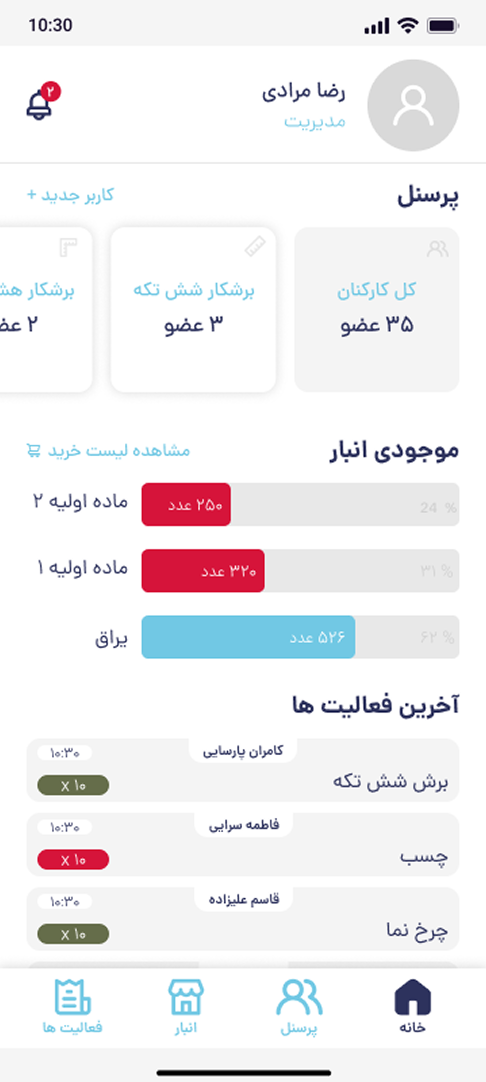 two-part application for a leather workshop: one for employees to track work and attendance, and another for administrators to manage staff and inventory, automating tasks and boosting efficiency.